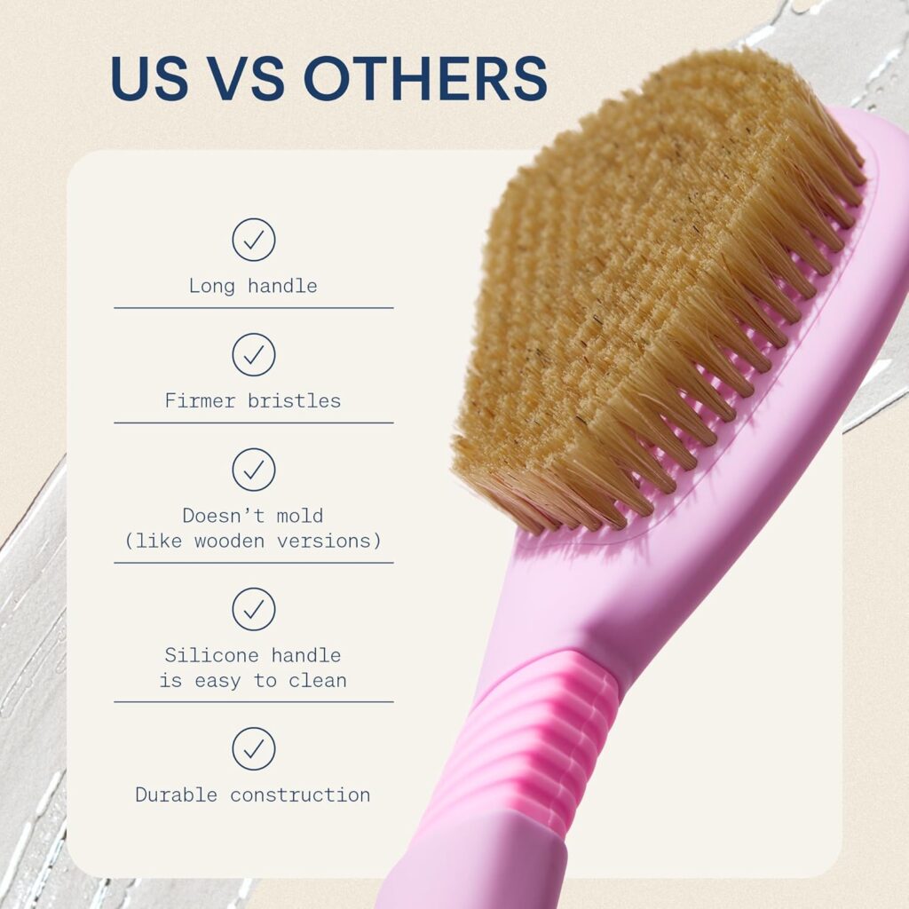 A note on handles: Brushes with extended handles are amazing for reaching hard-to-reach places like your entire back, shoulders, and the backs of your thighs. If you’re flying solo (like most of us), that stick is genuinely a game-changer for full-body coverage. If you’re very flexible or have help, a handheld works great.